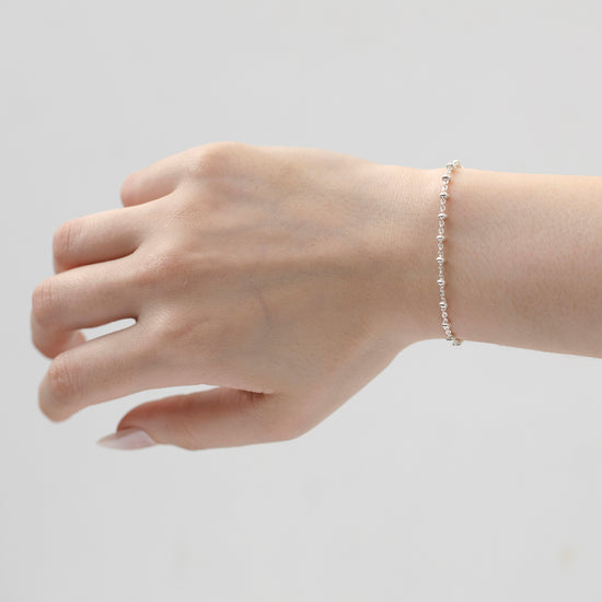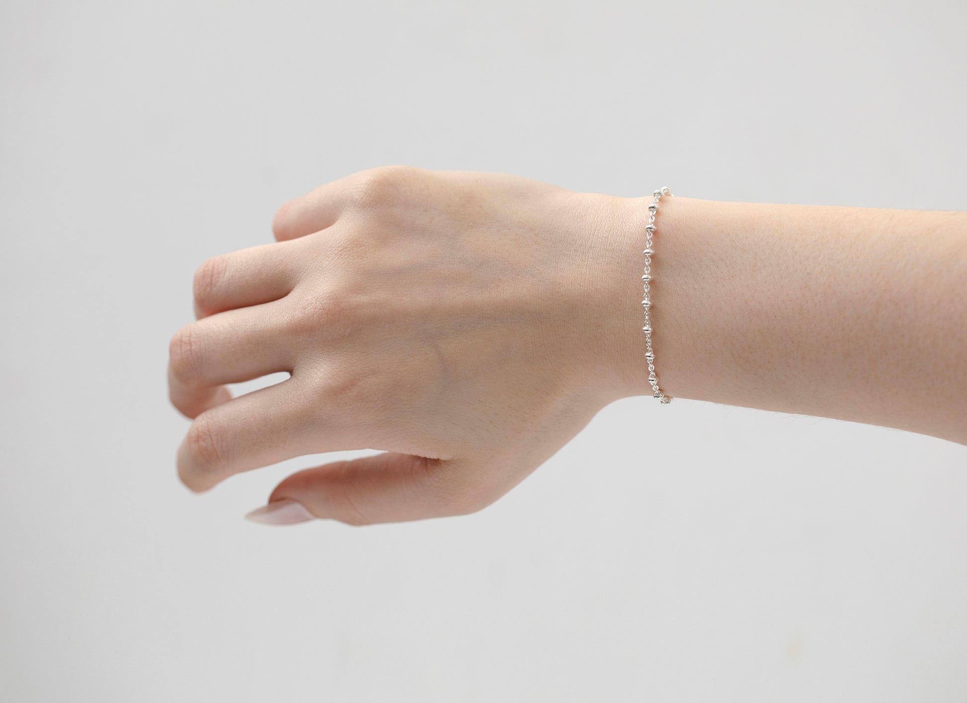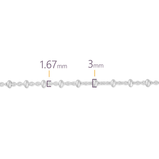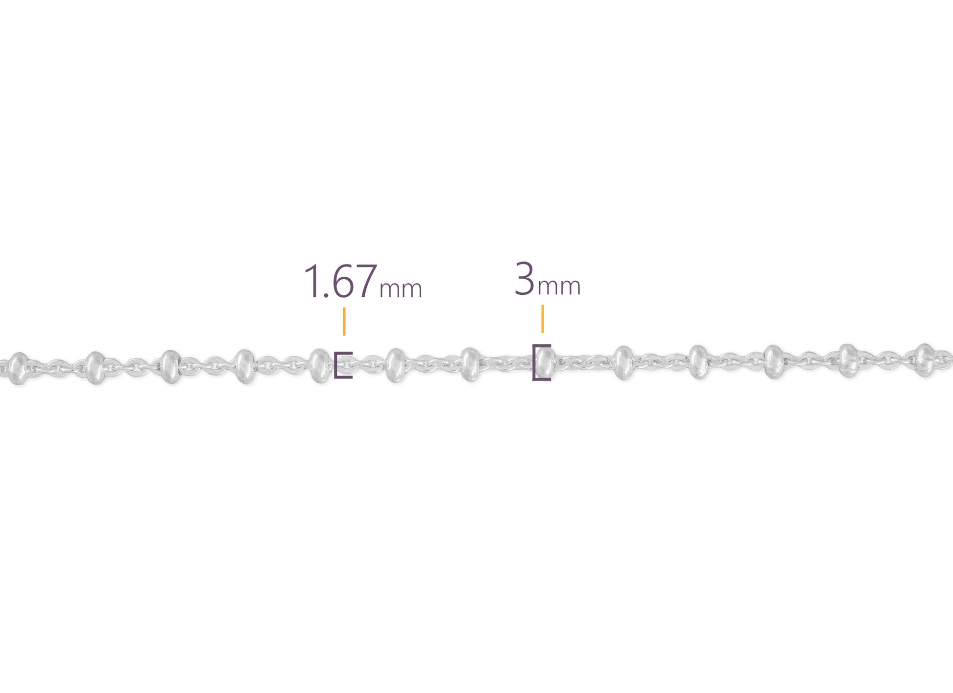 Crafted from sterling silver, this 2.11mm cable satellite chain features 0.38mm wire links (2.11mm x 1.67mm) accented with 3mm beads for a textured, stylish design. Perfect for permanent jewelry, necklaces, bracelets, anklets, and layered pieces, versatile custom creations.