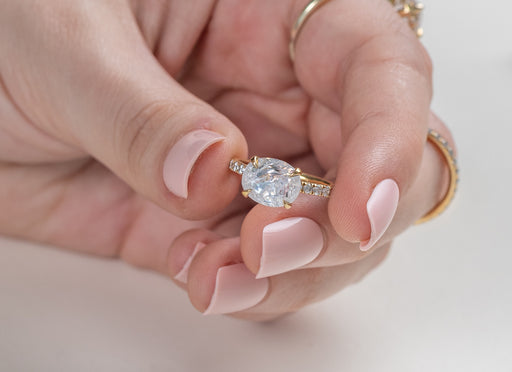 East-West Oval Diamond Pavé Engagement Ring Semi-Mount in Fairmined Yellow Gold