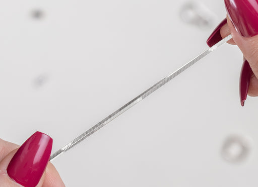 This sterling silver herringbone chain features 1.55mm wide links made from a 0.5mm wire, offering a smooth, flat design that lies beautifully agai...