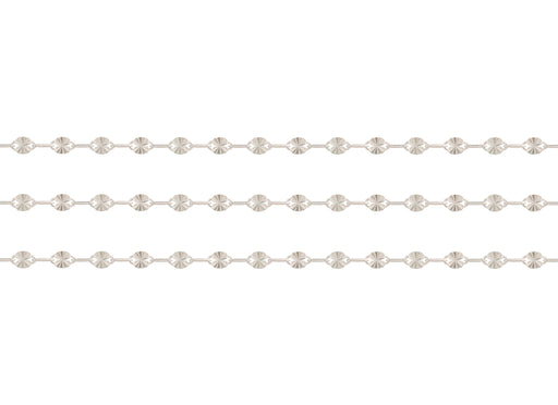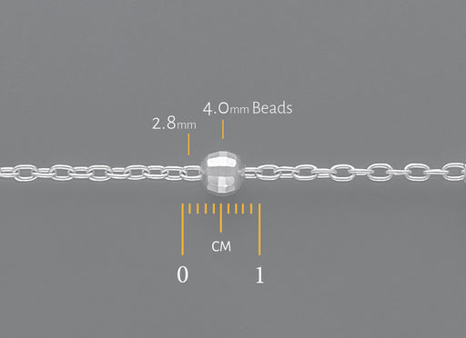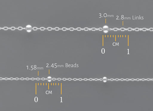 This sterling silver chain is made from 0.38mm wire and features 2.11mm x 1.67mm cable links, spaced with 3mm beads. Ideal for permanent jewelry de...