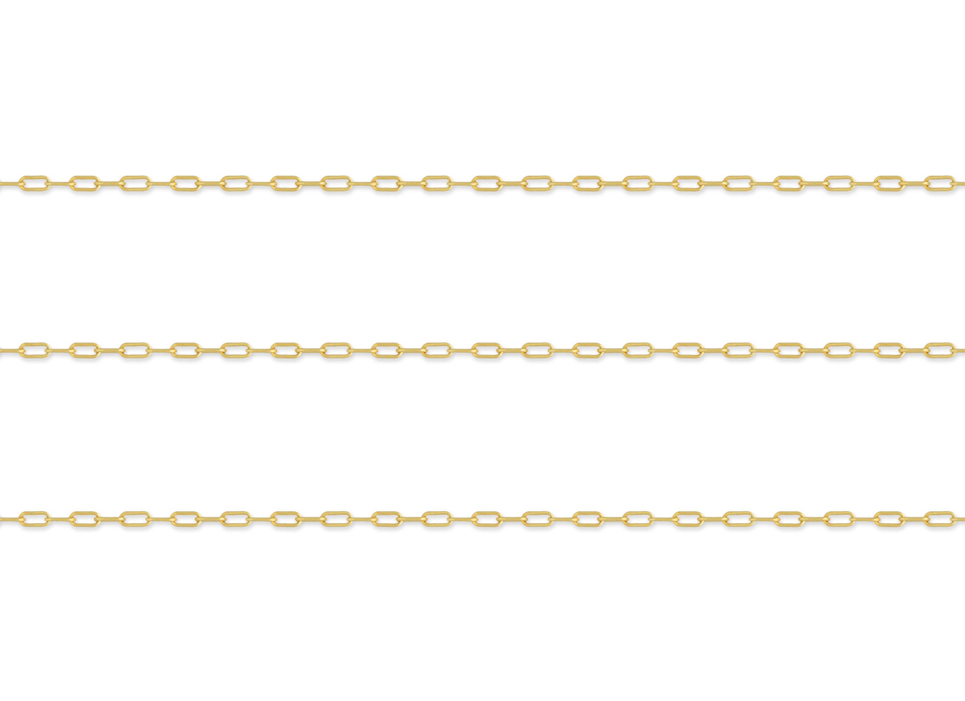 A customer favorite, this Paperclip Link Chain features delicate, elongated links measuring 1.7mm x 3.5mm, crafted from 0.40mm rounded wire. It's the perfect choice for designs that call for the refined look of a cable chain but with a modern twist of elongated links.