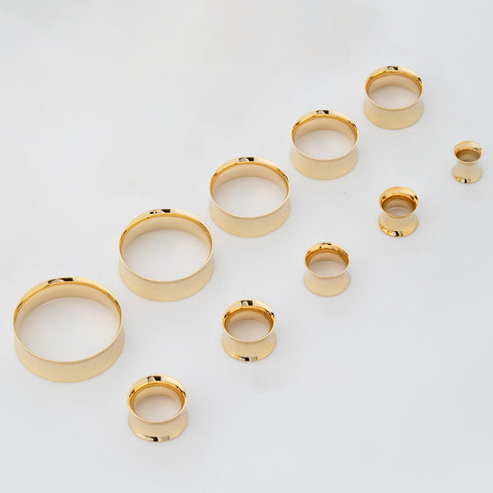 Offer your customers an elevated option for stretched ear jewelry with our premium gauges, crafted from high-polish, nickel-free 14K yellow gold. Designed for both style and comfort, these pieces cater to discerning wearers seeking a luxurious yet practical upgrade for daily or occasion wear.