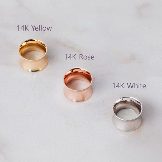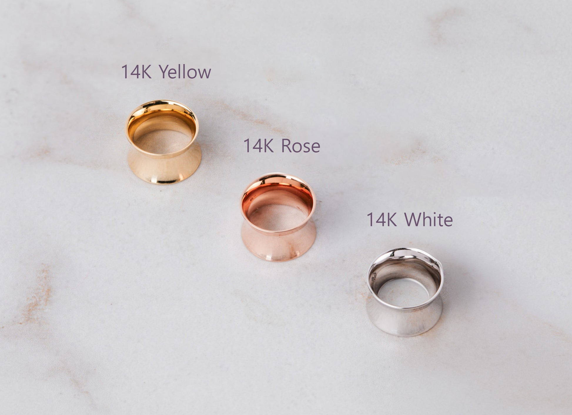 Product Overview: 14K Gold Gauges (2g–1"), 14K Yellow, White, and Rose Gold