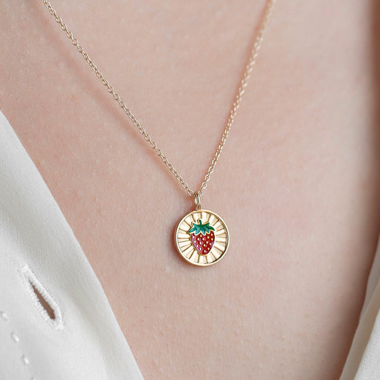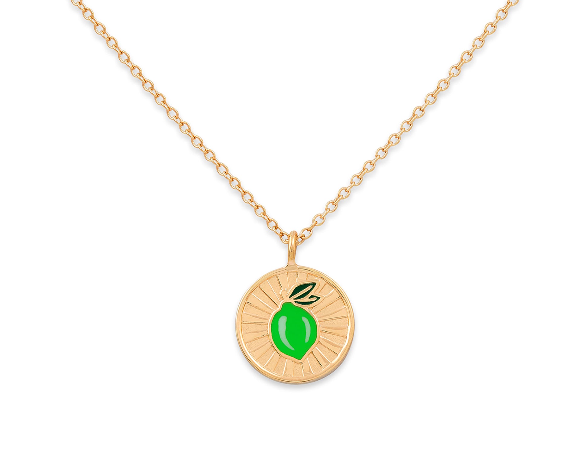 Available in 14K yellow gold/ soft enamel: Apple, Blueberries, Cherries, Lime, Peach, Strawberry.