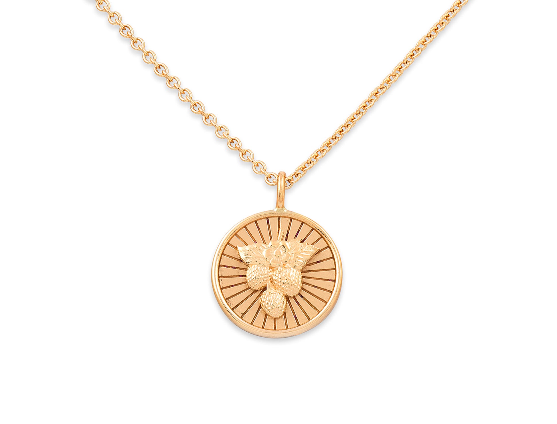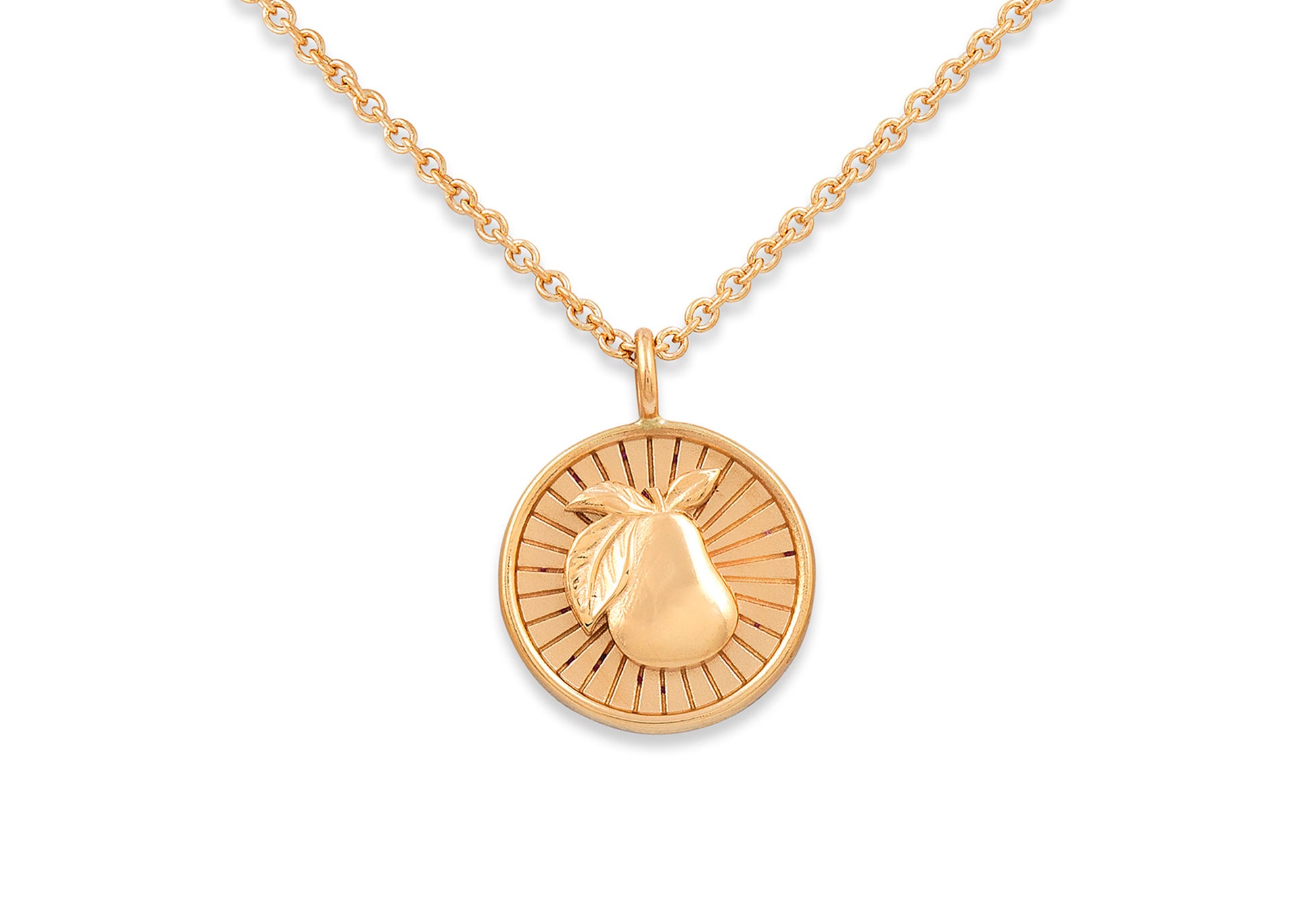 Available in 14K yellow gold: Grape Vine, Orange Blossom, Pear, Pineapple, Pomegranate, Raspberries.