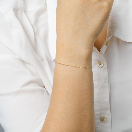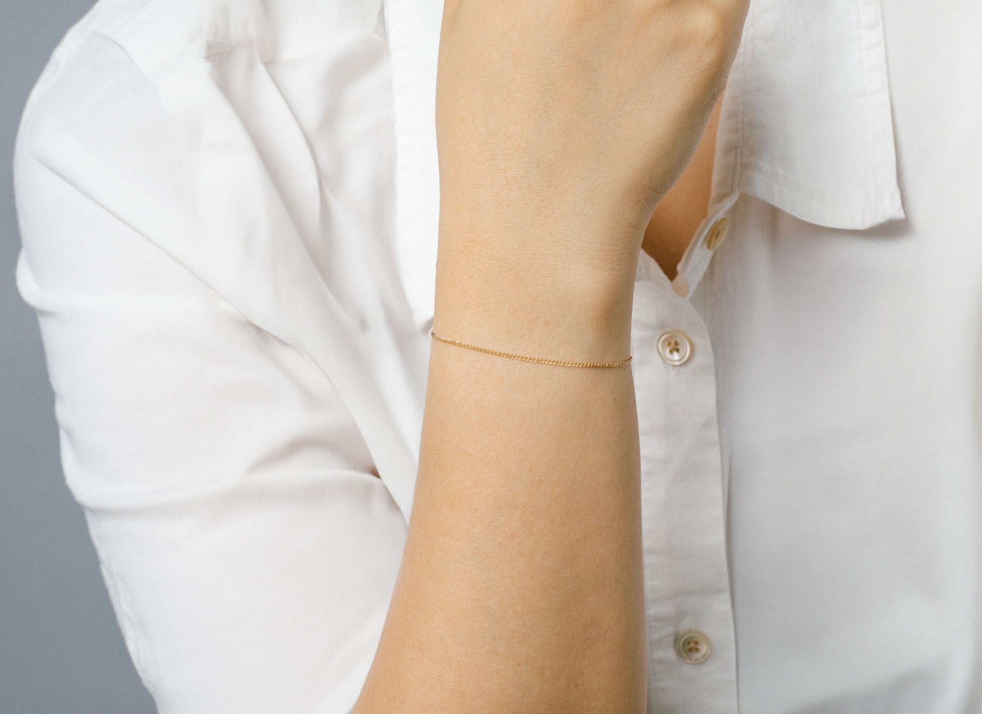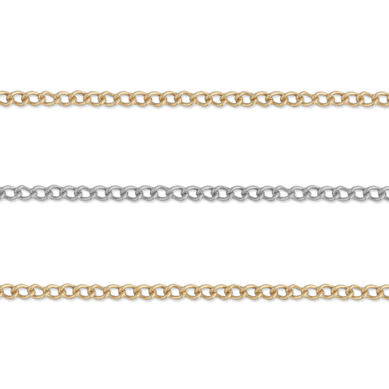 Add timeless versatility to your collection with RIVA’s 1.1mm Curb Chain by the Inch, crafted in 14K gold. This fine yet durable chain features extra-small, high-polish curb links that lie flat for a sleek, comfortable fit. Its lightweight design makes it a go-to choice for permanent jewelry bracelets, pendant necklaces, anklets, and layering pieces. Sold by the inch, this chain is ideal for jewelers seeking precision, customization, and wholesale flexibility.