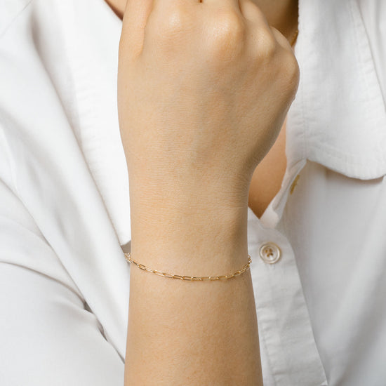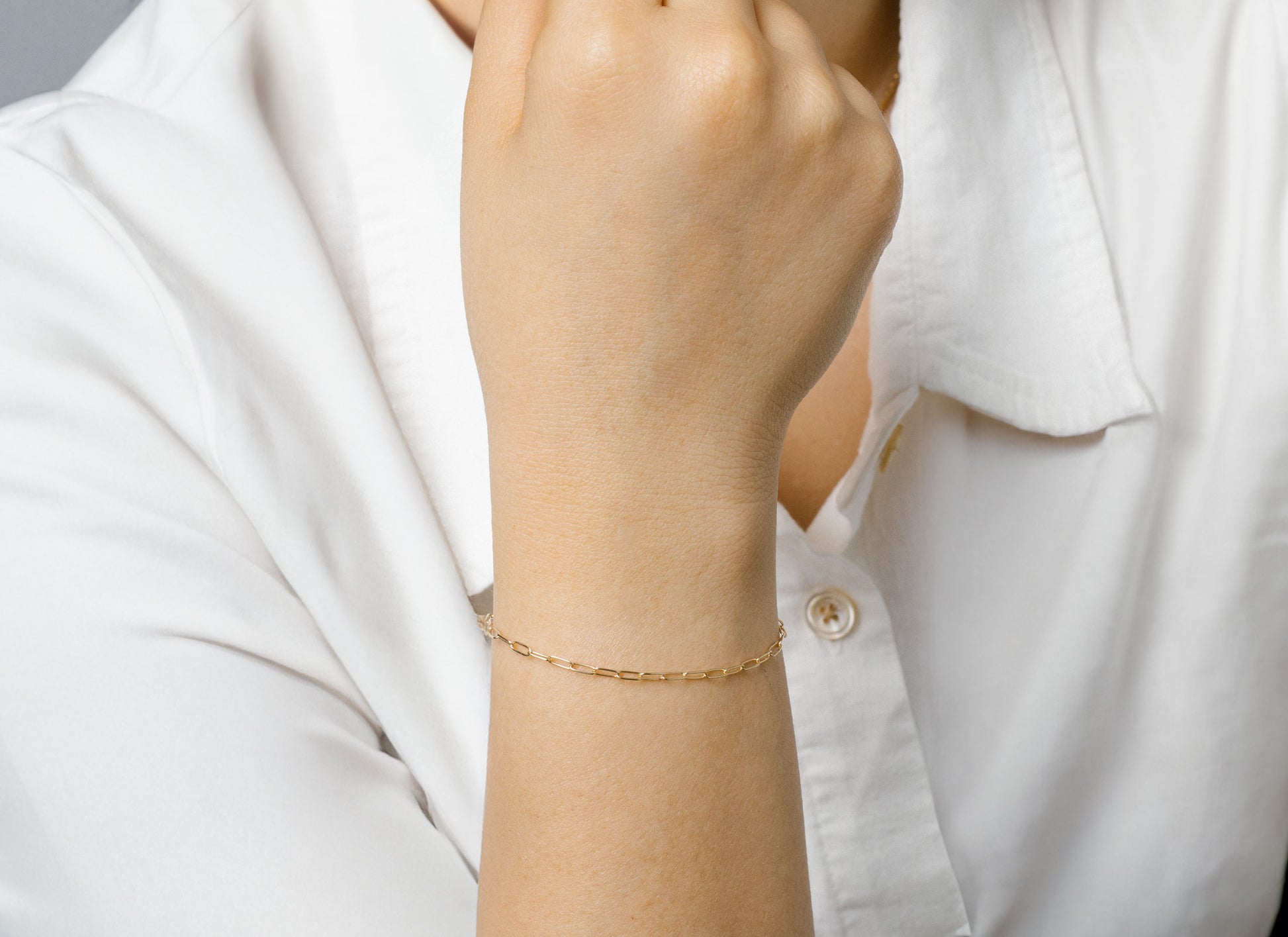 Introducing our high-polish chain crafted in yellow, white, or rose gold (14K or 18K), perfect for your jewelry projects. This chain showcases extra-small paper clip-style links with beautifully rounded edges. Finished sizes come with lobster claw clasps and jump rings. Tags are not included; if you would like to request for finished chains with tags bearing an engraving of your logo, please contact us to place a special order.