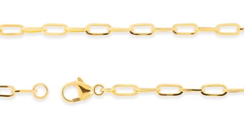 Our bestselling chain, crafted in SCS-certified recycled gold. This chain style showcases extra-small flat paper clip-style links, measuring 2.6mm x 5.7mm, for a sleek and contemporary look. Choose from a range of options including 14K or 18K yellow, rose, and white gold. Finished sizes come with lobster claw clasps and jump rings. Tags are not included; if you would like to request for finished chains with tags bearing an engraving of your logo, please contact us to place a special order.