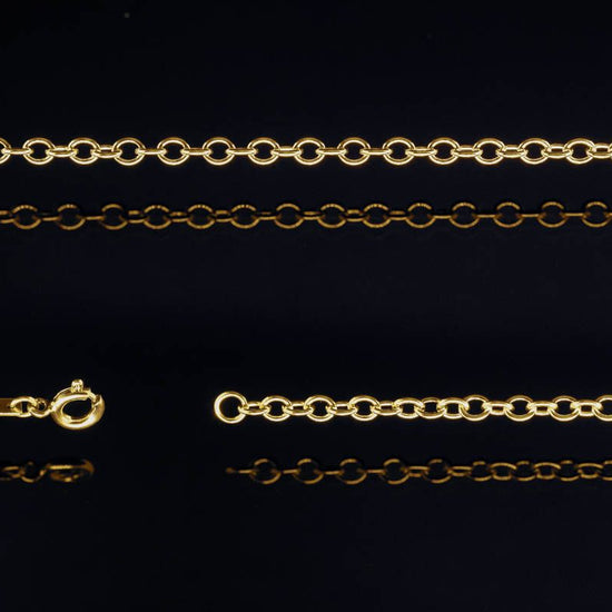 Cable chain featuring medium-sized links of 0.60mm wire, in 14K or 18K gold (yellow, white or rose), perfect for men’s and women’s jewelry. Finished sizes come with spring ring clasps and jump rings. Tags are not included; if you would like to request for finished chains with tags bearing an engraving of your logo, please contact us to place a special order.