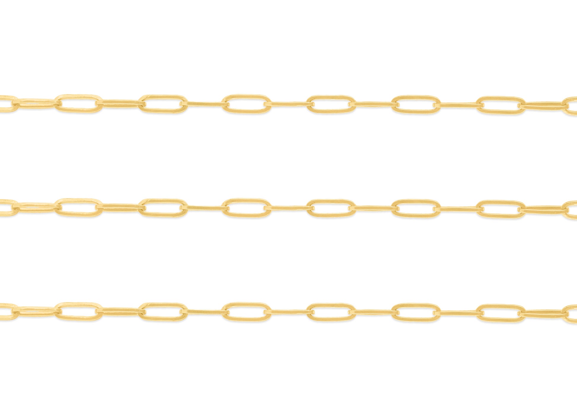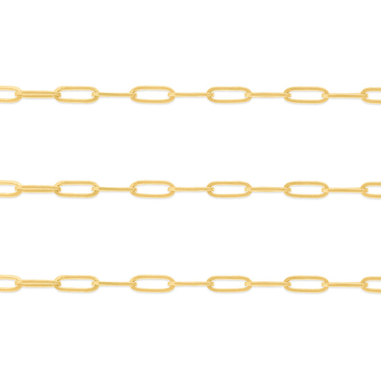 Introducing our stunning chain crafted in high-polish yellow, rose, or white gold. This chain showcases elegant small paper clip-style elongated links with rounded edges, exuding timeless charm. Available in both 14K and 18K options, it offers the perfect blend of luxury and style for your jewelry creations. Finished sizes come with lobster claw clasps and jump rings. Tags are not included; if you would like to request for finished chains with tags bearing an engraving of your logo, please contact us to place a special order.