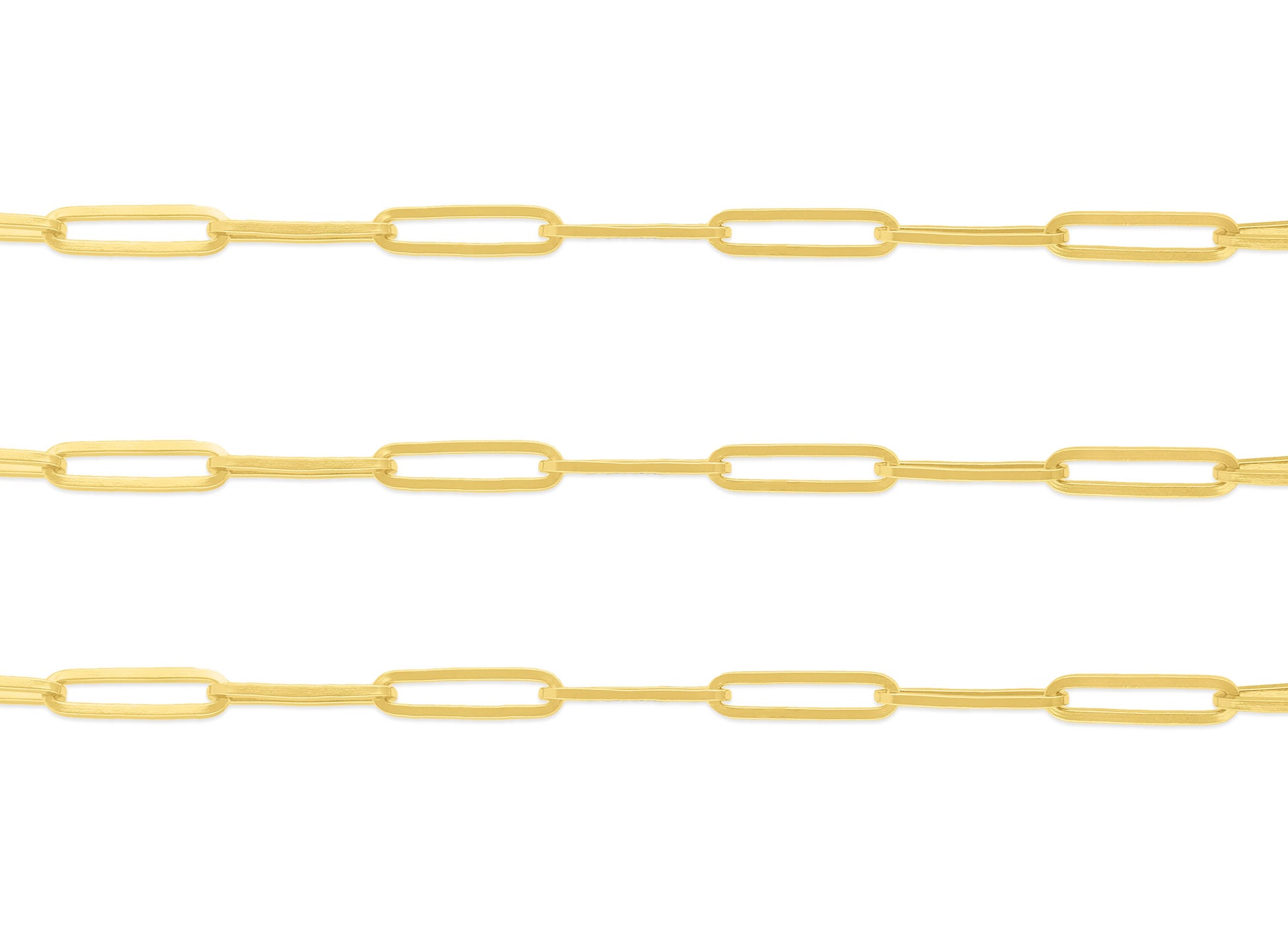 This remarkable chain showcases medium-sized extra-elongated flat paper clip-style links (link size: 3.8mm x 14mm), adding a touch of elegance to your creations. Expand your possibilities further with the availability of rose and white gold variations, providing a range of options to suit your design preferences.