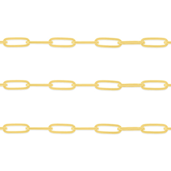 If you are looking for a distinctive chain element for your next jewelry collection, consider RIVA Precision's square-edged (or flat) paper clip link chain in high-polish 14K or 18K yellow gold, featuring medium-sized extra-elongated links. Each link measures 4mm x 11mm. We also make this chain in rose gold and white gold.