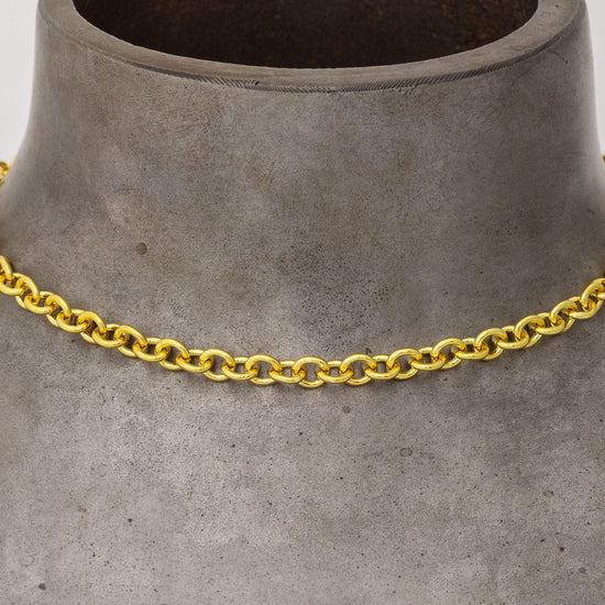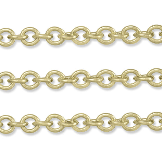 Heavy cable chain in high-polish yellow, white or rose gold, featuring large 6.06mm x 6.7mm links of 1.35mm wire.