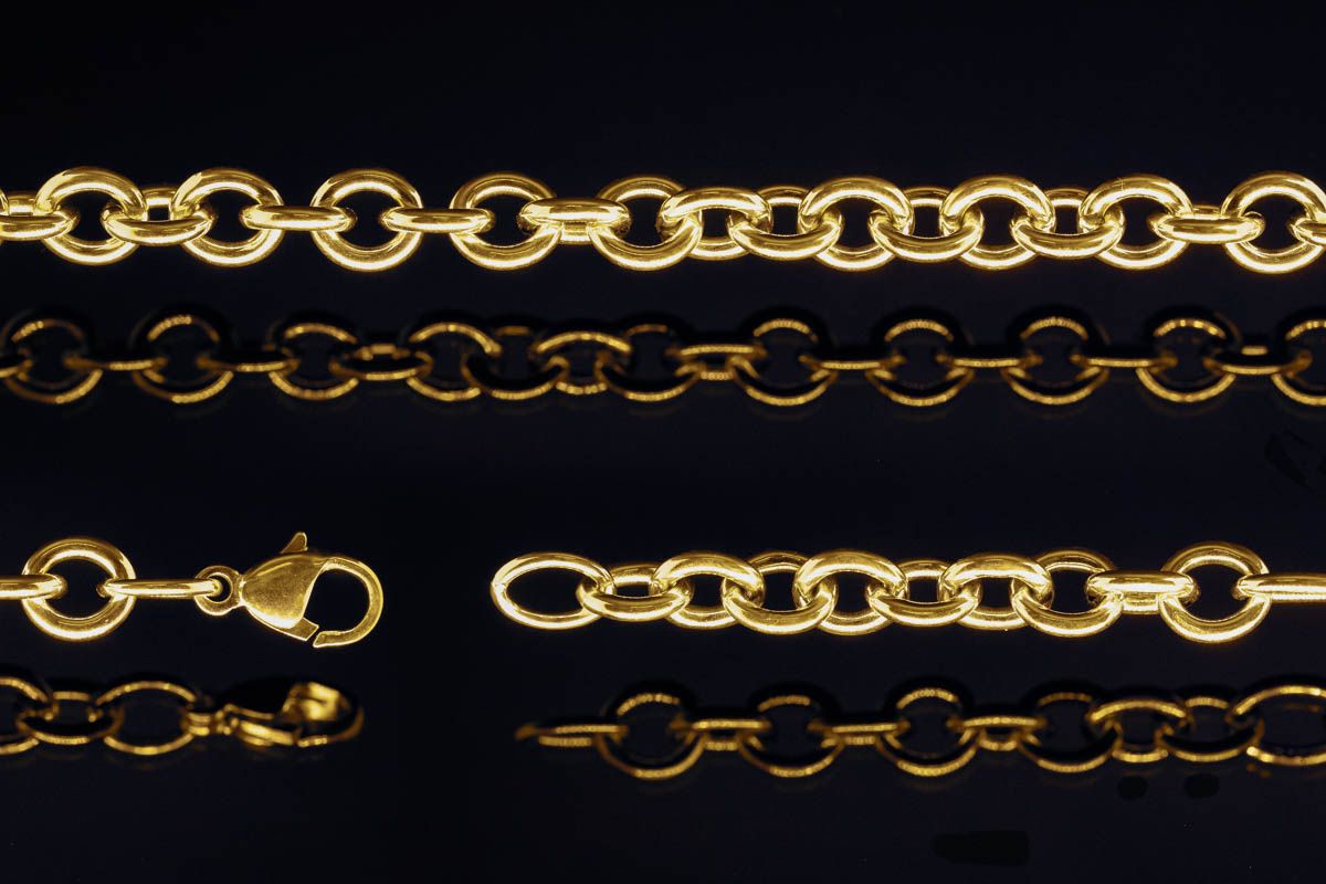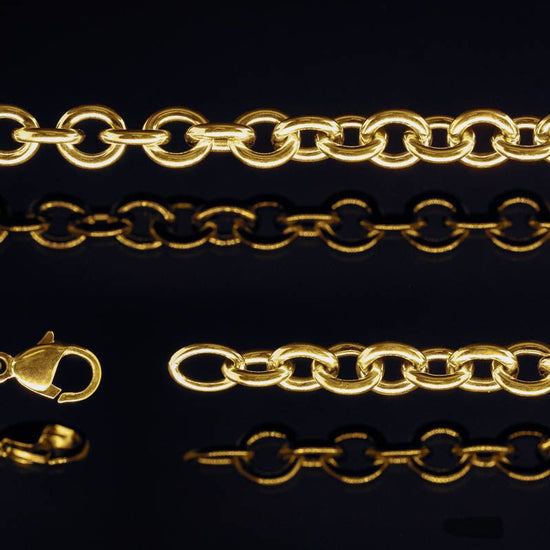 Heavy cable chain available in high-polish 14K or 18K gold. Perfect for both men's and women's jewelry, this stunning chain features large semi-elongated links (7.65mm x 8.5mm) made from thick 1.75mm wire. The finished chain includes a 13mm lobster claw clasp and jump rings. Please note that tags are not included.