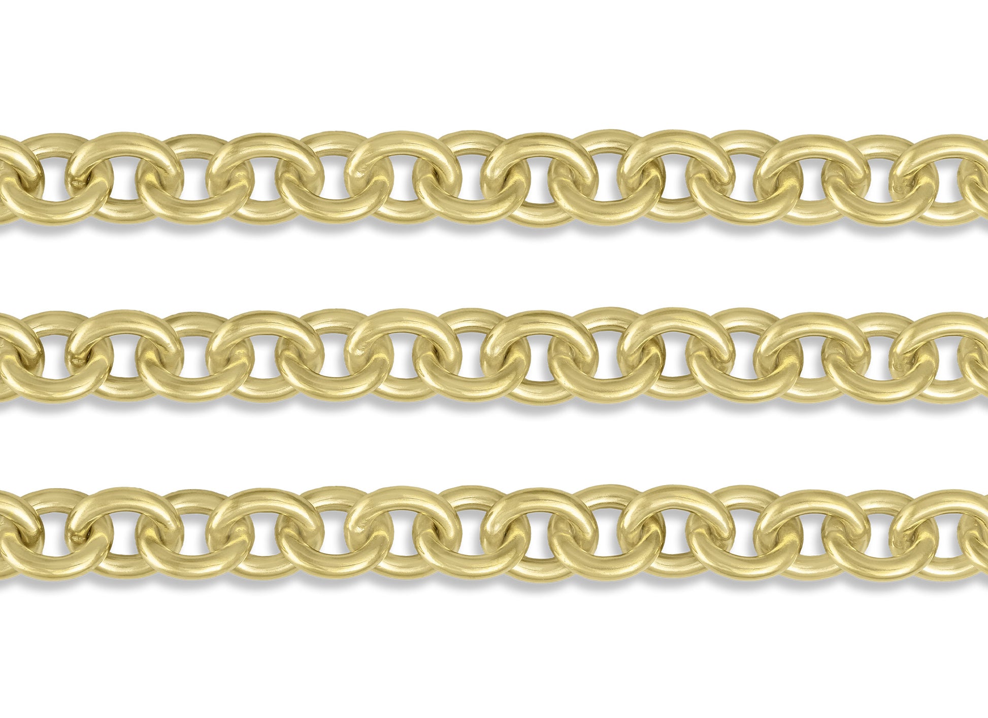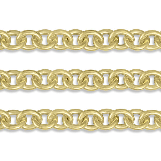 Heavy cable chain available in high-polish 14K or 18K gold. Perfect for both men's and women's jewelry, this stunning chain features large semi-elongated links (7.65mm x 8.5mm) made from thick 1.75mm wire. This chain is compatible with RIVA's Invisible Clasps.
