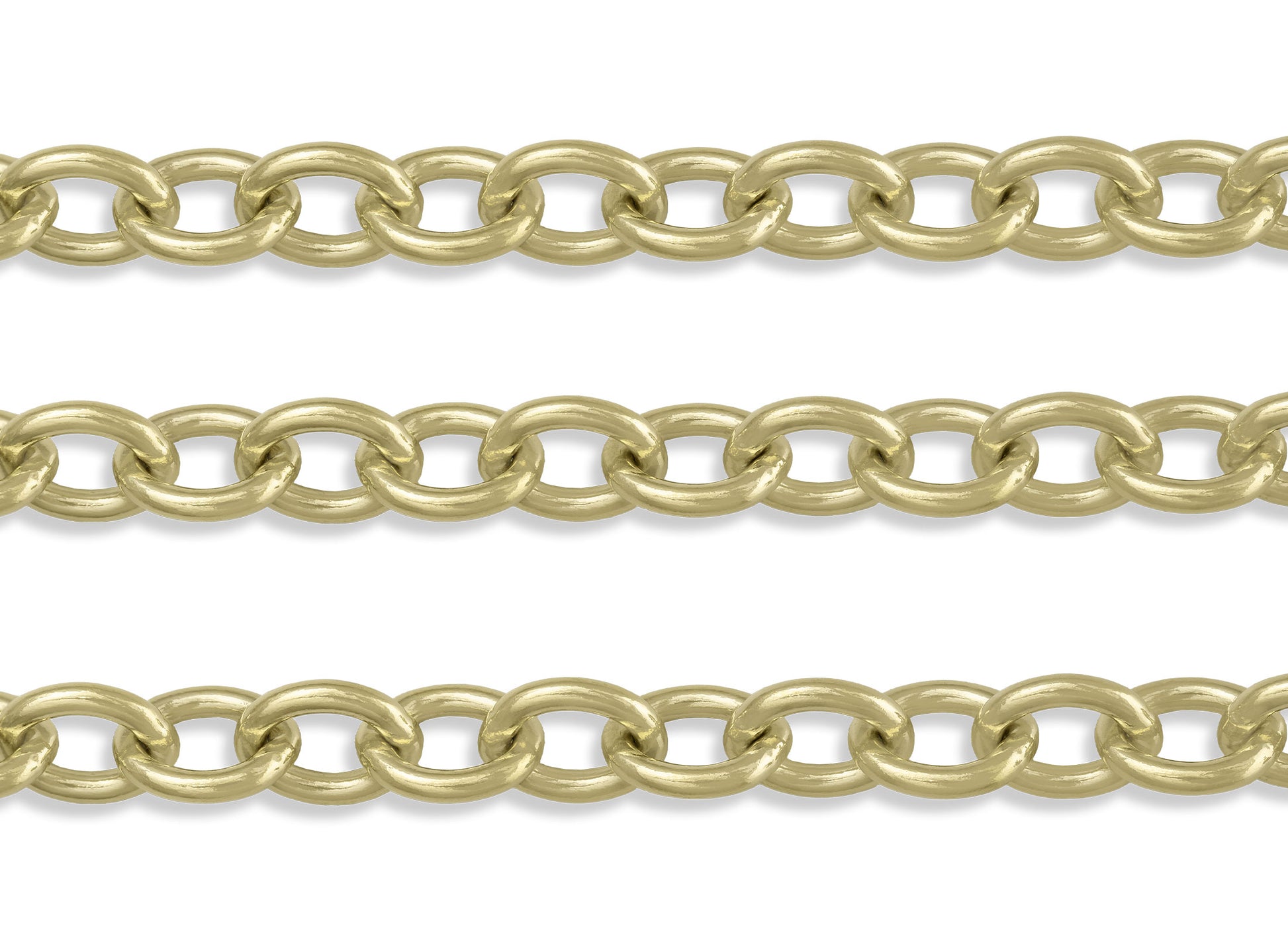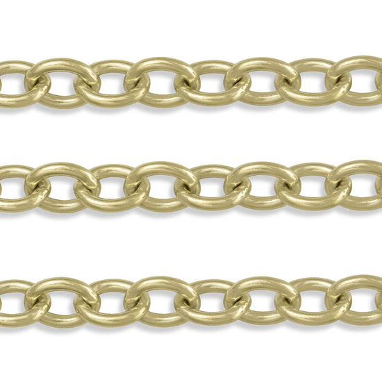 Thick gold cable chain with large 8.36mm x 8.96mm links made from durable 1.95mm wire, perfect for necklaces and bracelets. Available in 14K or 18K gold. The finished chain includes a 12mm lobster claw clasp and jump rings. Please note that tags are not included.