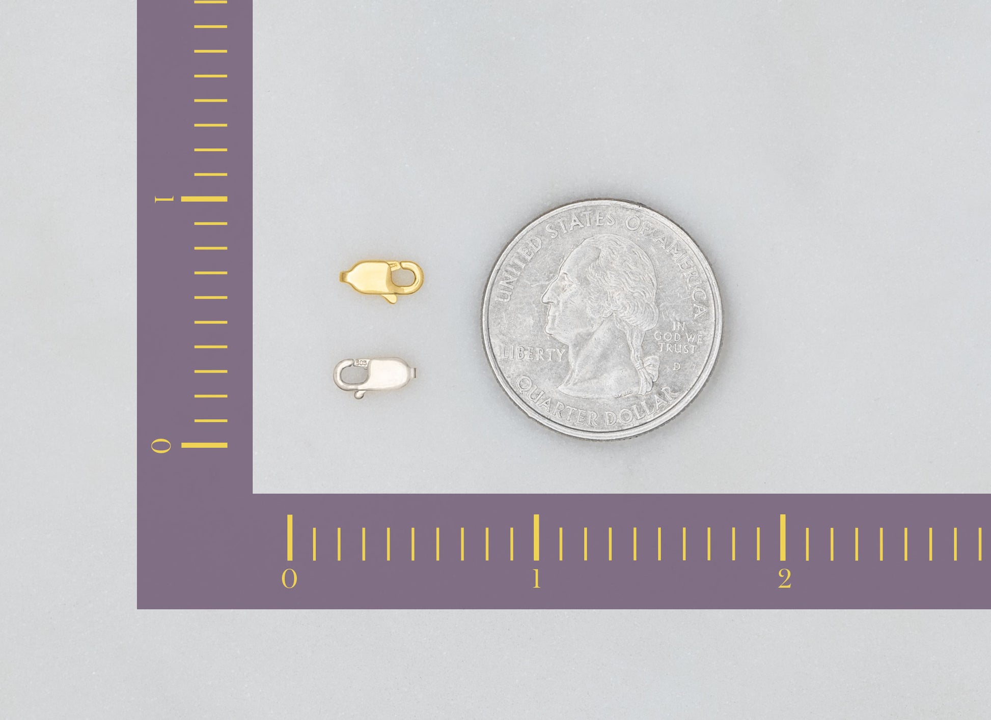 Finish your dainty gold necklaces, bracelets, or anklets with this 8.4mm x 4mm high-polish Flat Lobster Claw Clasp. Crafted from 14K or 18K gold—including yellow and rose gold—this lightweight yet durable clasp provides a secure and elegant closure, perfectly complementing fine chain designs.