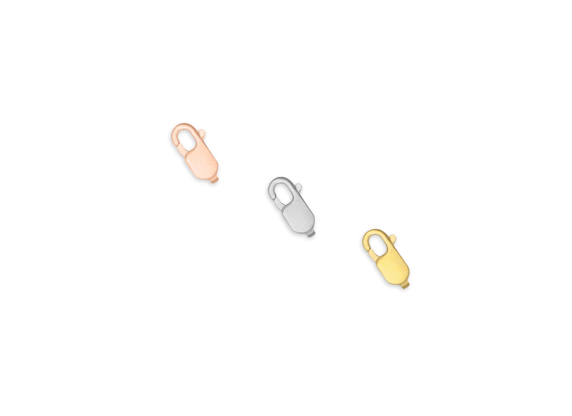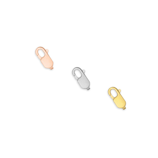 Finish your dainty gold necklaces, bracelets, or anklets with this 8.4mm x 4mm high-polish Flat Lobster Claw Clasp. Crafted from 14K or 18K gold—including yellow and rose gold—this lightweight yet durable clasp provides a secure and elegant closure, perfectly complementing fine chain designs.