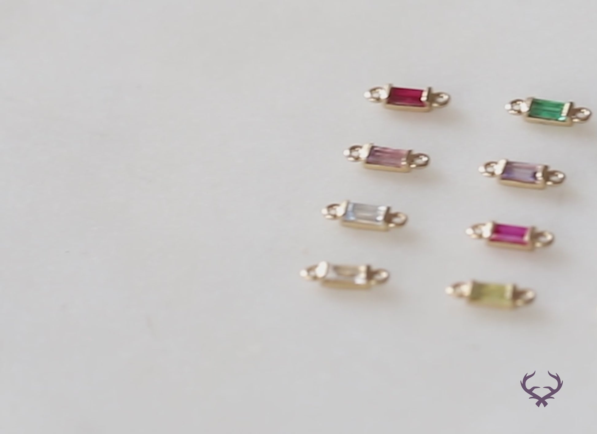 Add a refined touch to your custom designs with RIVA’s 14K Gold Synthetic Baguette Birthstone Connector, crafted with precision and timeless simplicity. Each connector features a 2x4mm baguette-cut synthetic birthstone set in a sleek solid 14K yellow or white gold bezel.