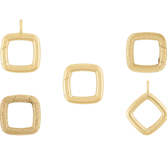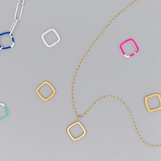 We delight in cushion cut diamonds and gemstones because of their charming and feminine silhouette, and it’s for that same reason that we adore this cushion-shaped Invisible Clasp. A subdued square with rounded corners will soften any jewelry look any day! The perfect housing for dainty charms and dangles, for sure. Featuring a secret hinge opening that effortlessly yet securely snaps open and shut, so it’s easy for the wearer to slide chain links, charms (and even other clasps) on and off.