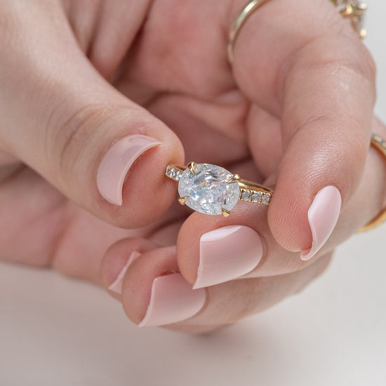East-West Oval Diamond Pavé Engagement Ring Semi-Mount in Fairmined Yellow Gold