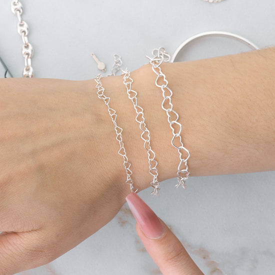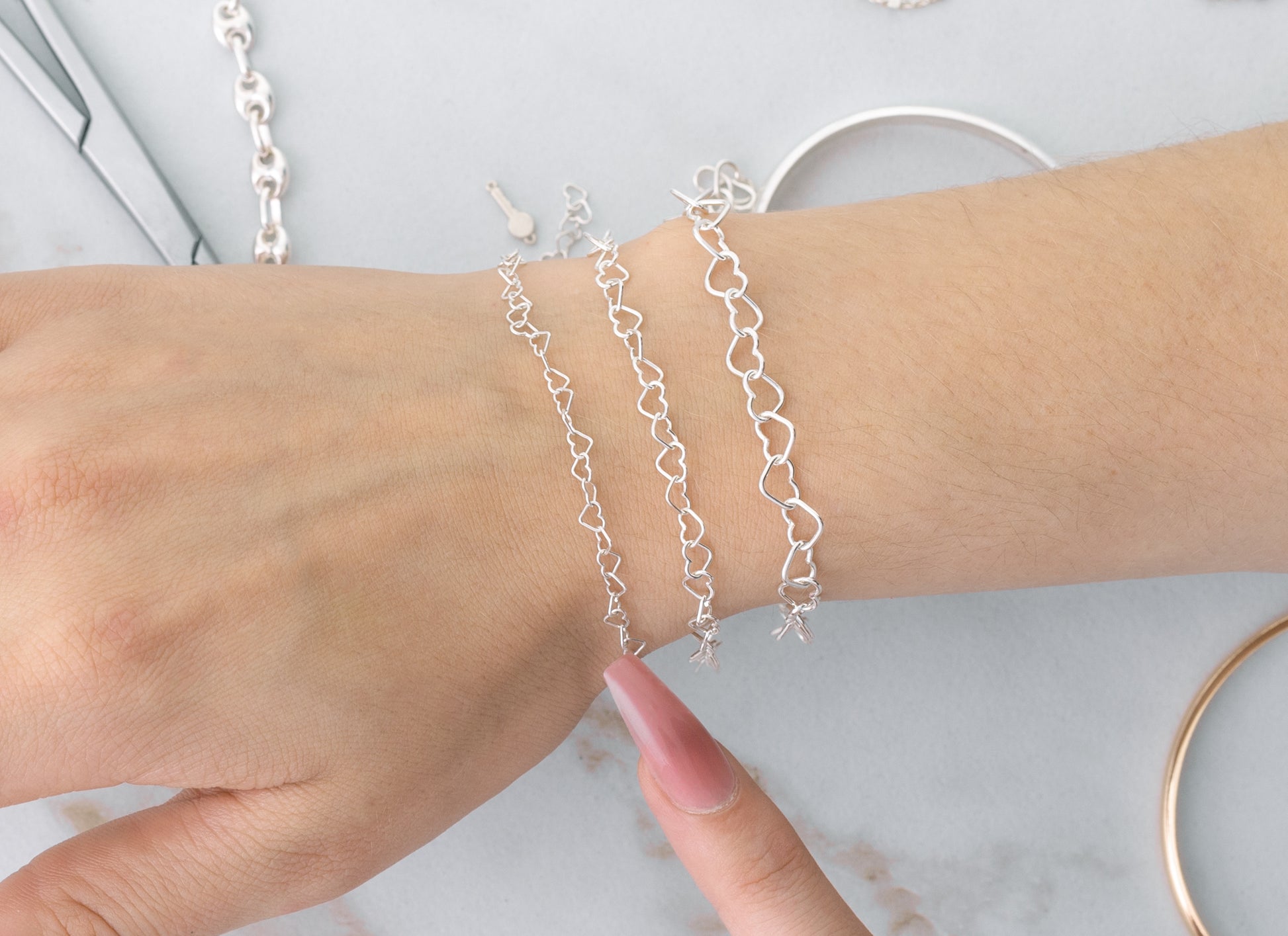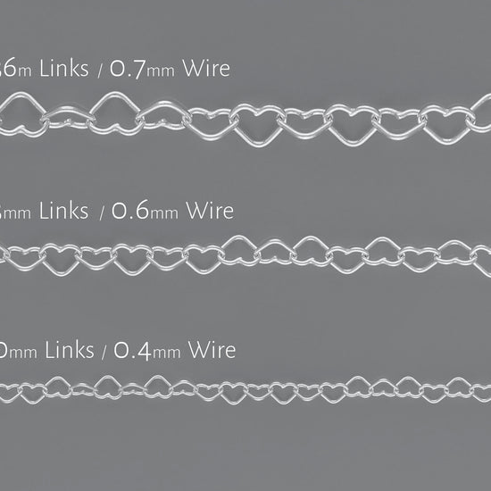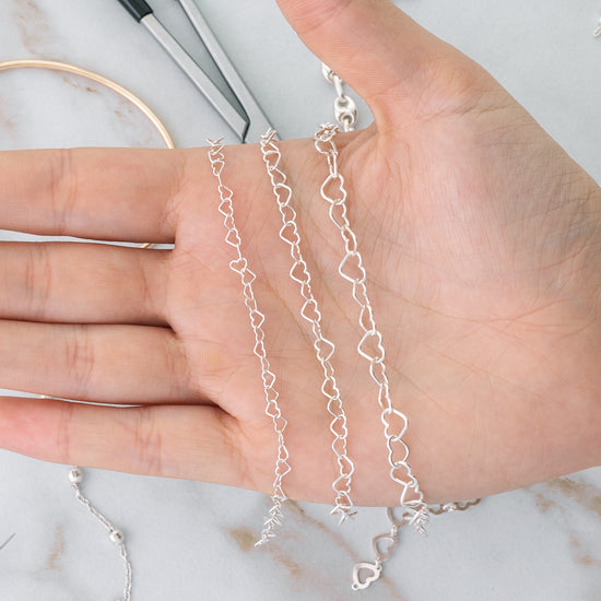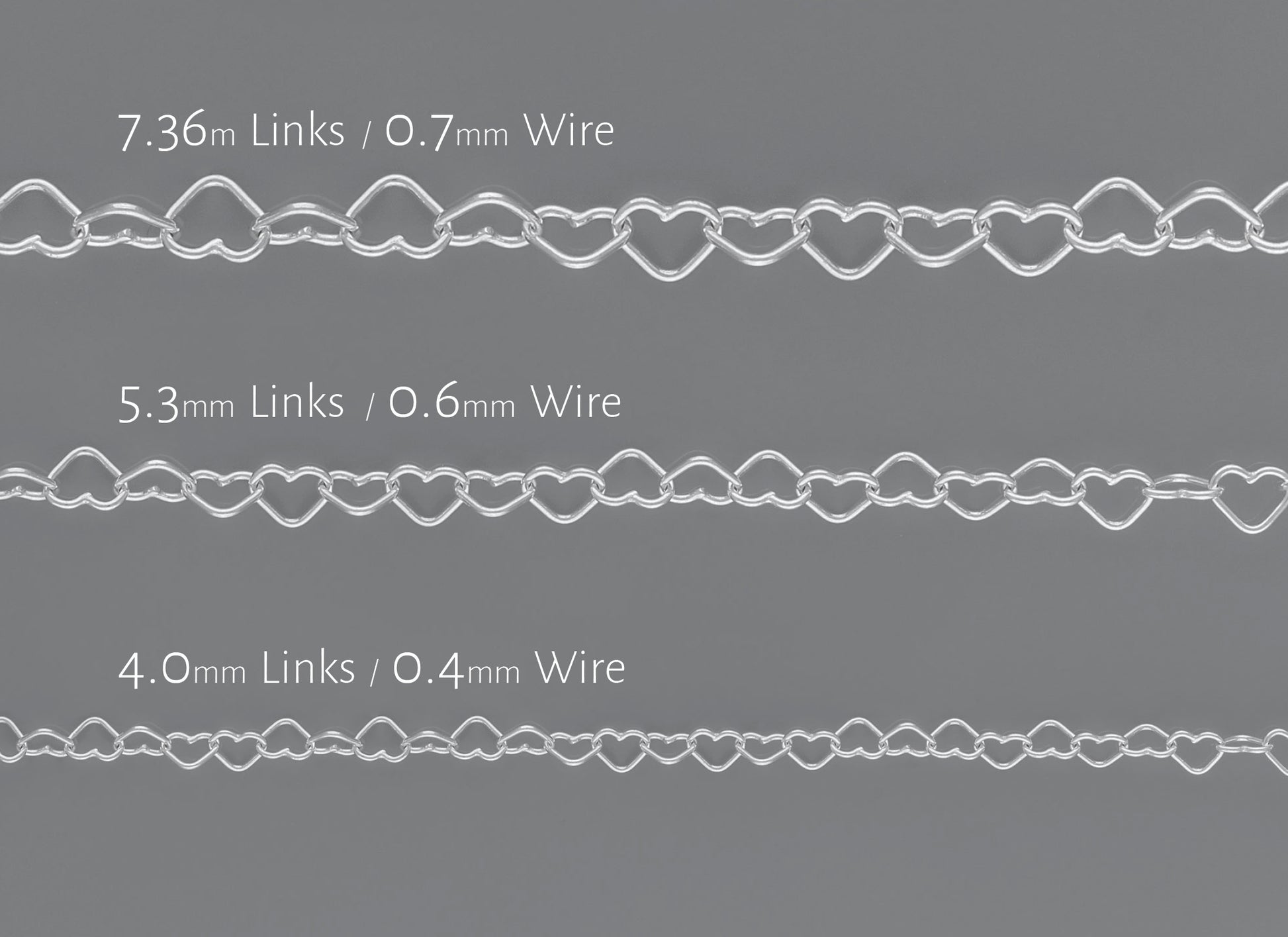 Introducing Our Heart Link Chain in Sterling Silver, available in three stylish link sizes—4mm, 5.3mm, and 7.36mm—this trendy heart link chain is ideal for creating permanent jewelry. Whether you layer them together or pair them with one of our Permanent Cuffs, these heart chains make a perfect addition to any permanent jewelry collection.