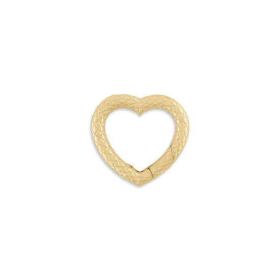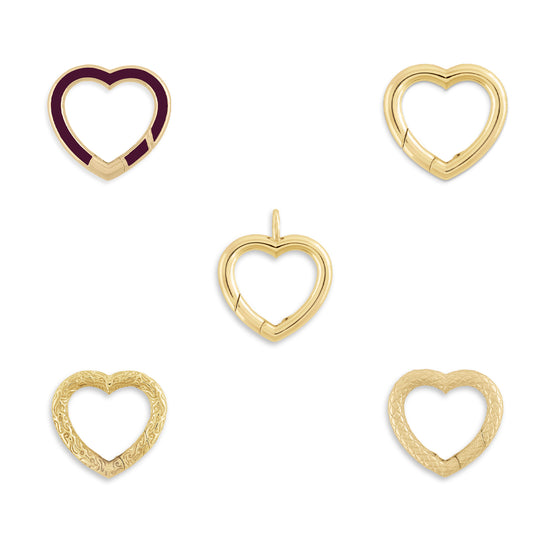 Our daintiest shape, the heart Invisible Clasp is a surefire way to add a romantic touch to any chain necklace or bracelet. Our favorite versions of this shape? The enameled ones, of course. Form also begets function: The point effectively provides a perfect niche for charms to dangle from, and the lobes act as anchor points for chain links .The incognito hinge sits along the bottom part of the left wing, and it snaps open and shut smoothly for easy sliding in (and off) of chain links, charms and other clasps/connectors.