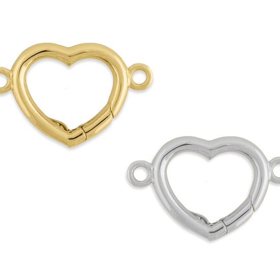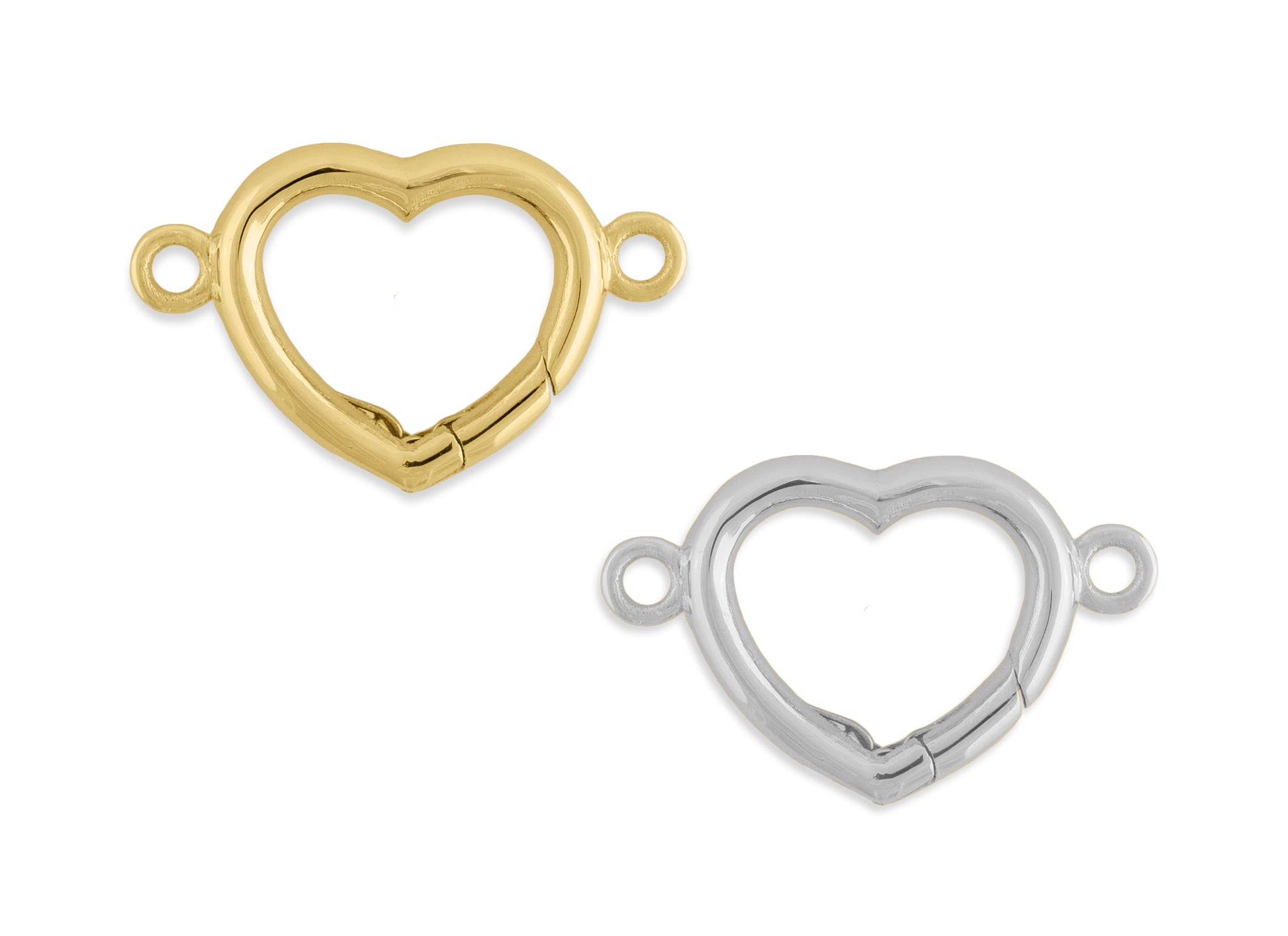 The heart Invisible Clasp Connector is a surefire way to add a romantic touch to any chain necklace or bracelet. The point effectively provides a perfect niche for charms to dangle from, and the bails act as anchor points for chain links .The incognito hinge sits along the bottom part of the left wing, and it snaps open and shut smoothly for easy sliding in (and off) of chain links, charms and other clasps/connectors.
