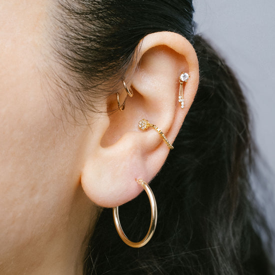 Crafted from hollow gold tubing, our hoop earrings boast a delicate balance of durability and lightweight comfort. The hinged back closure ensures easy wearability, providing a secure fit for all-day confidence.