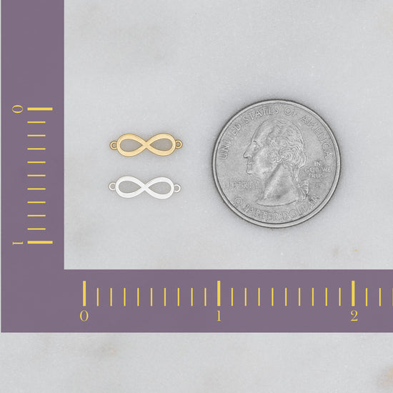 Introducing RIVA's Infinity Gold Connectors – these connectors measure approximately 13.07mm x 4.40mm, making them ideal for personalizing permanent jewelry, as well as traditional necklaces, bracelets, and more. Available in 14K yellow gold, 14K white gold, and sterling silver.