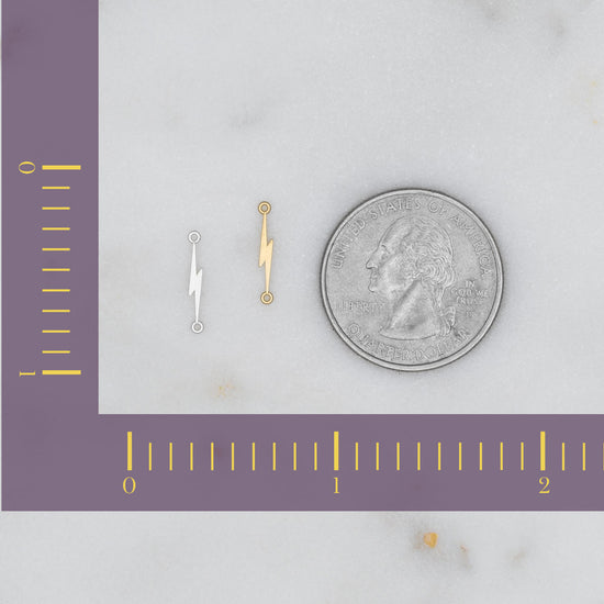 Introducing RIVA's Lightning Bolt Gold Connectors – these connectors measure approximately 13.42mm x 1.60mm, making them ideal for personalizing permanent jewelry, as well as traditional necklaces, bracelets, and more. Available in 14K yellow gold, 14K white gold, and sterling silver.