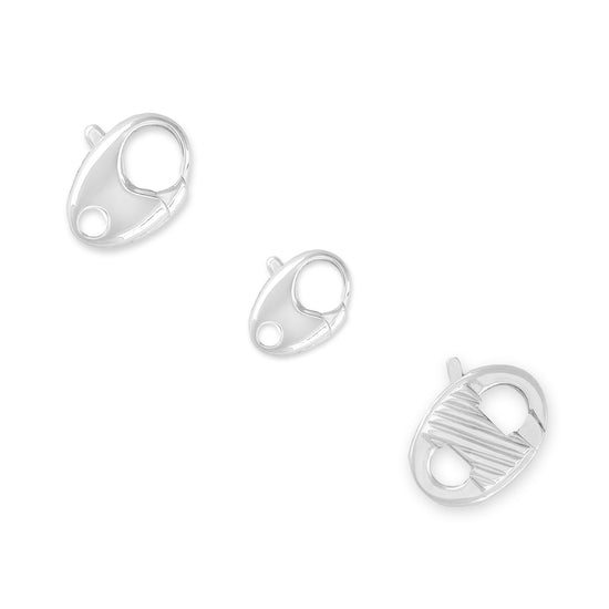Complete your necklaces, bracelets, or anklets with our Sterling Silver Lobster Claw Clasp. Available in two sizes, this lobster claw clasp is the perfect finishing touch for heavy sterling silver necklaces and bracelets. It features no jump ring, allowing you to add your own jump ring or directly connect the clasp to a link in the chain.