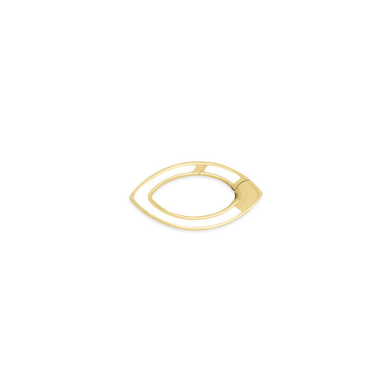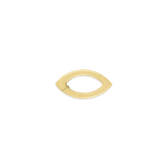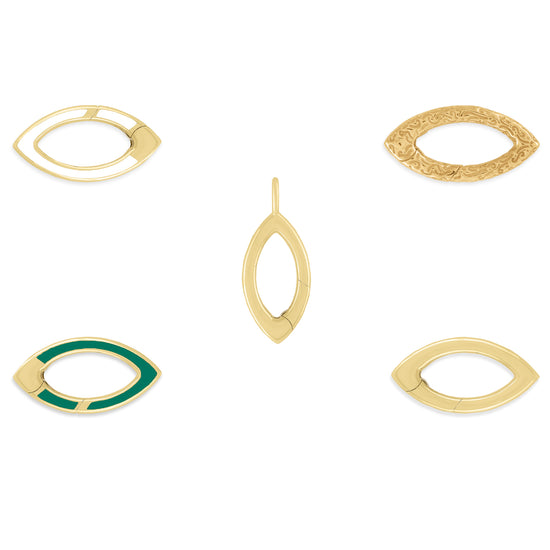 The marquise-shaped Invisible Clasp is one of our top favorites: very dainty, what with the pointed ends and all, yet still very much unisex. When used to close two ends of a chain together (or to connect two chains), the pointed recesses on either side effectively hold the chain’s (or chains') end links in place. Plus the arcs make for the perfect cradles for charms! One side/arc contains the incognito hinge that snaps open and shut for easy sliding in (and off) of chain links, charms and other clasps/connectors.