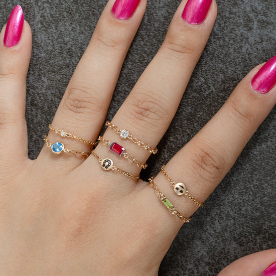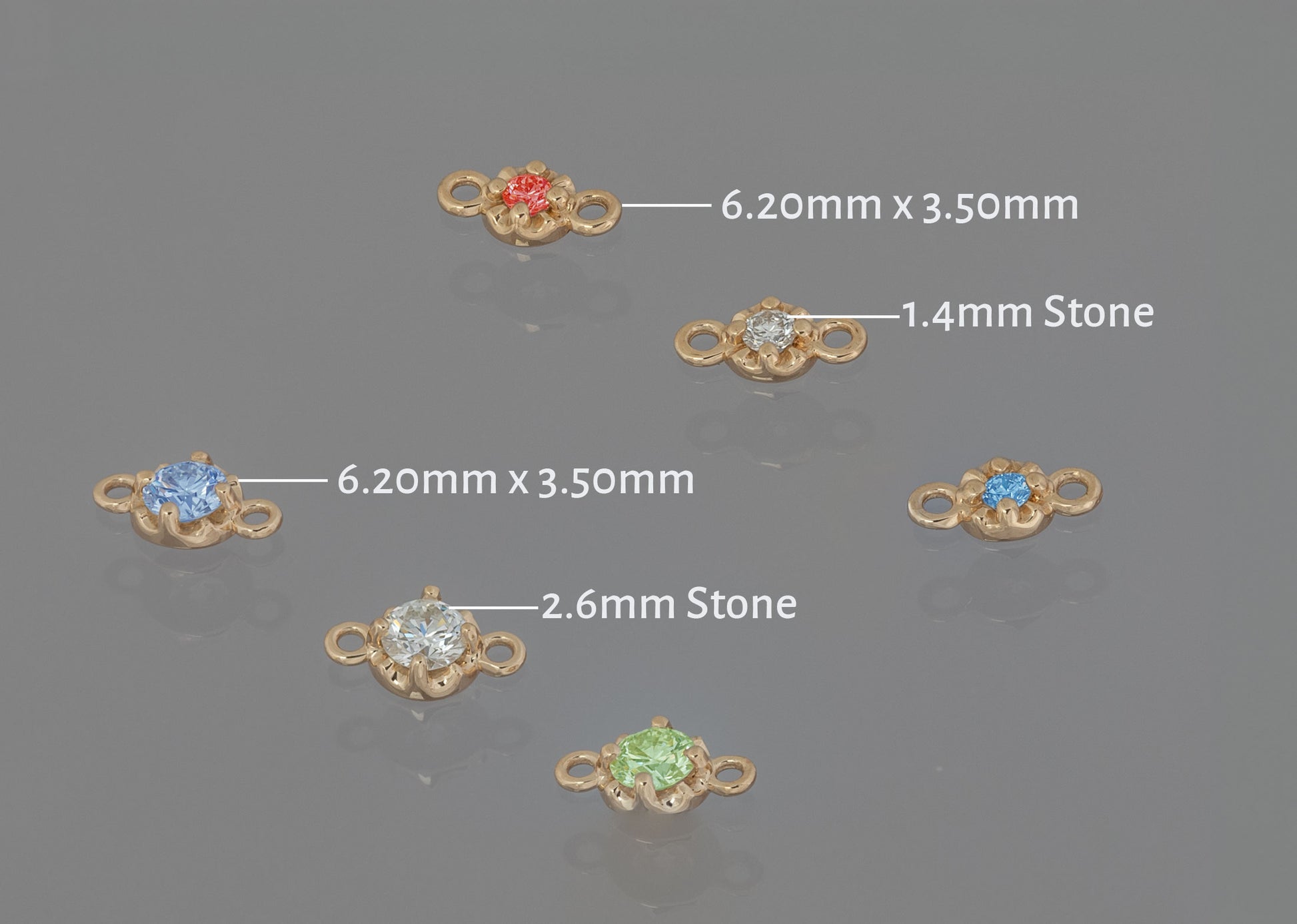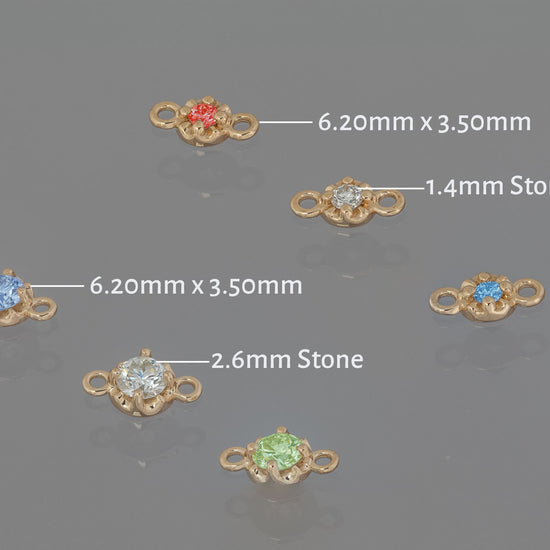 Discover our latest addition to the permanent jewelry line: the Prong Set Birthstone Connectors. Unlike traditional bezel settings, our prong set connectors create a stunning setting that adds an extra level of brilliance to your jewelry pieces. Available in 14K white and yellow gold, these connectors come in 2.6mm and 1.4mm birthstones. Customize your permanent jewelry, including rings, bracelets, hand chains, necklaces, and earrings, with these distinctive connectors.