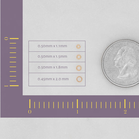 RIVA Precision offers Round-shaped jump rings in 14K Yellow and White. (figures below are Wire Thickness x Inner Diameter):