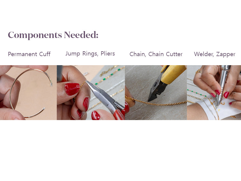 Introducing the Permanent Cuff, the original Riva Precision Manufacturing design. Fashioned from 1.25mm and 2.0mm round wire, the Permanent Cuff features two caps with bails, allowing you to weld a chain or charms of your choice to create a stunning, one-of-a-kind personalized piece. Available in sterling silver and gold-filled wire, our Permanent Cuffs open up a new world of creativity for customers and permanent jewelry artists alike.