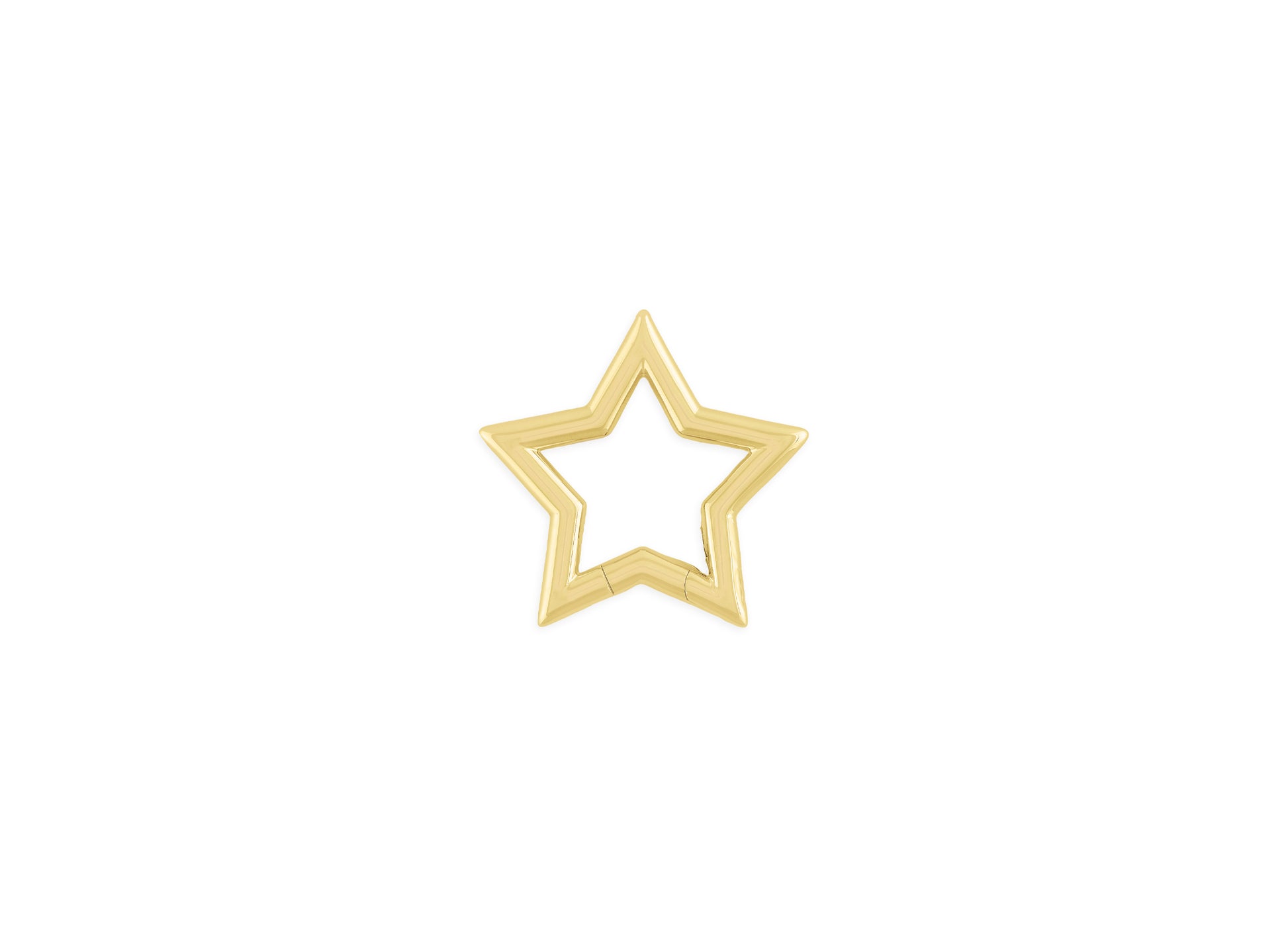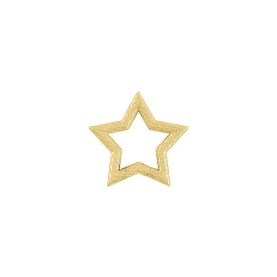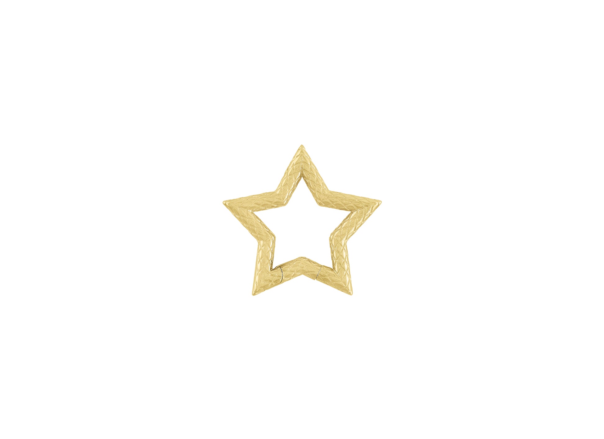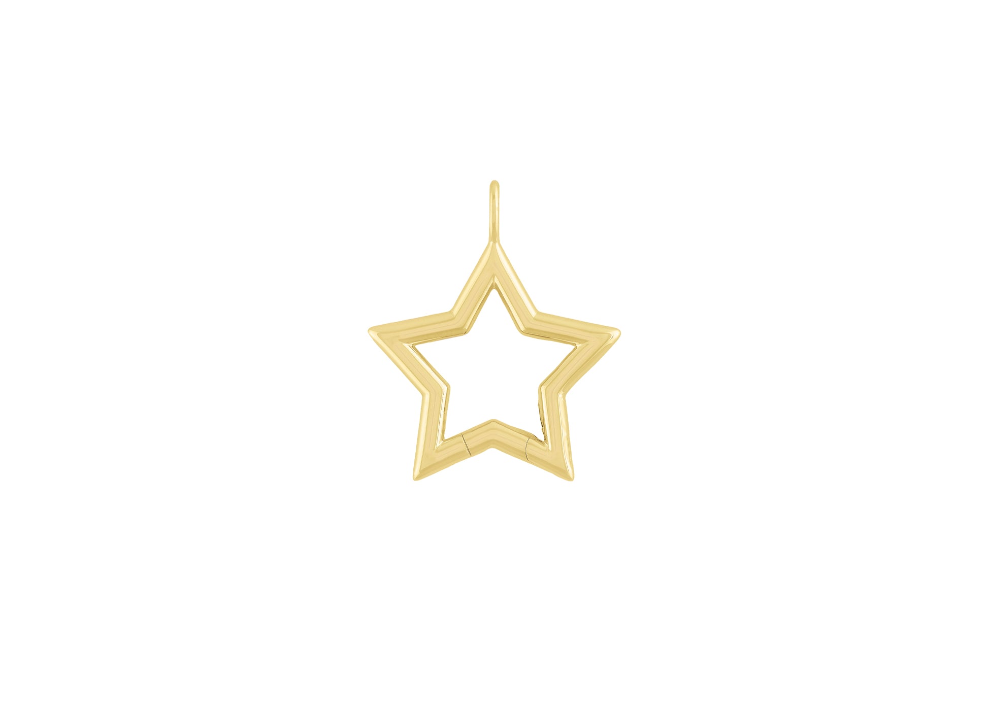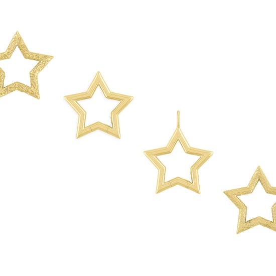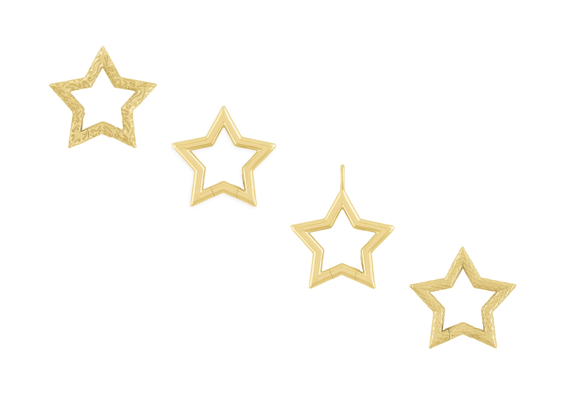 Our star-shaped Invisible Clasp is just the thing to add a playful, whimsical touch to any “neck mess” or army candy. Some wearers will do their thing with it sans charms/dangles, as the shape is statement-making enough on its own; but others will find that, because it has multiple corners, it makes for the perfect charm holder! Our favorite variations of this shape? The high-polish and the enameled ones! The seamless hinge opening is nestled between two points; the wearer simply pushes the hinge inwards in order to attach charms and connect chain links.