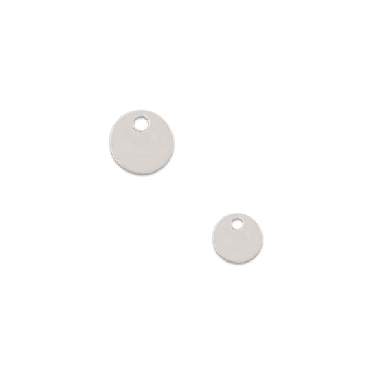 Simple yet timeless, these Sterling Silver flat circle charms are perfect for customizing permanent jewelry pieces or as elegant chain tags.