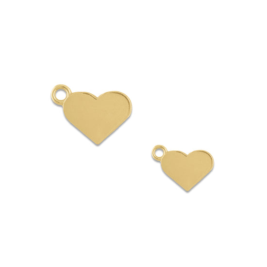 Our flat heart charm is available in two sizes and three metal options: 14K yellow gold, 18K yellow gold, and sterling silver. Perfect for permanent jewelry or as a stylish pendant for necklaces.