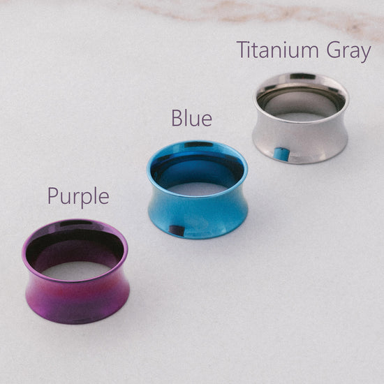 Product Overview: High-Polish Titanium Gauges (2g–9/16") – Blue, Titanium Gray & Purple